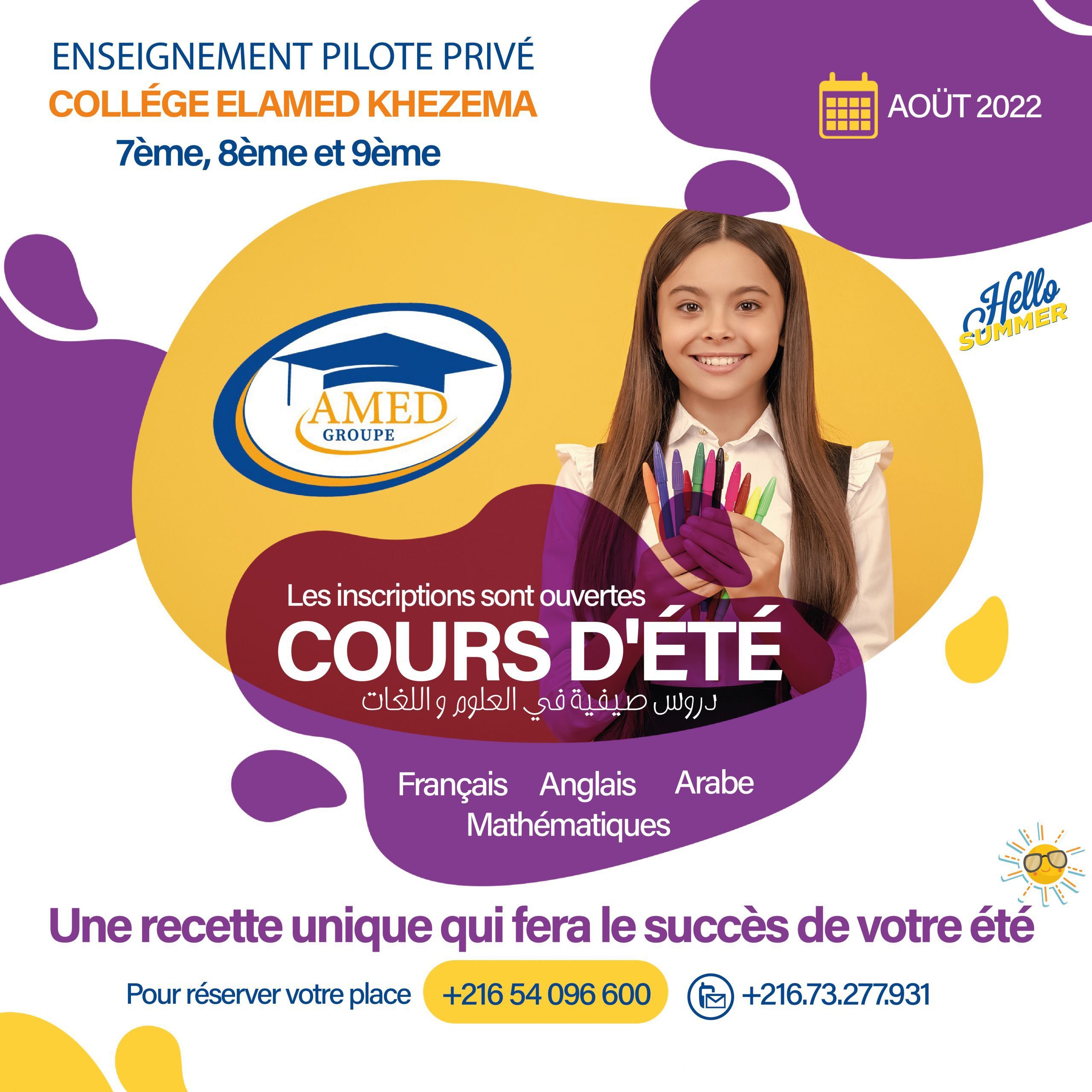 COLLÉGE AMED KHEZEMA vous propose un programme riche et varié pour pour une durée de 4 semaines.